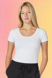 Super soft bamboo, short sleeved top keeps you cool while still giving you a comfy feel. This piece looks amazing alone or even layered!