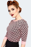This lovely blush coloured sweater with black hearts covers all angles of love!