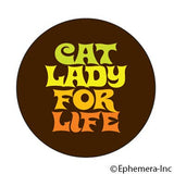 Embrace your feline affinity with our 'Cat lady for life' button from Ephemera. This 1.25" pin-back button is the perfect addition to your collection, serving as a bold declaration of your love for cats. With its sharp, polished look, it adds a dash of humor and personal flair to any outfit, backpack, or lanyard. As a part of our novelty line, it’s designed to bring a smile to your face and spark conversation. Wear it proudly, fellow cat lover!
