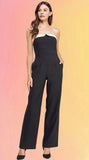 - Contrast satin tailored jumpsuit in stretch suiting fabric.