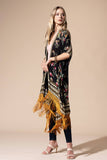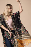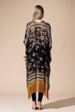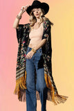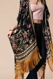 Stunning floral print with ornate border featuring fine tassel kimono with side slits