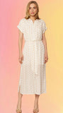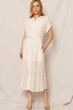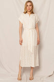 • Short Sleeve Lurex Polka Dot Button Down Midi Dress