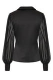A silky peter pan collar and matching silky buttons gives this blouse a luxe feel.