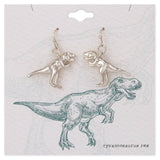 Channel Jurassic charm with these silver Tyrannosaurus rex earrings. These adorable silver dino earrings are perfect for adding a playful touch to any outfit. The smooth shiny silver t-rex design makes for a modern prehistoric statement. Ideal for anyone who loves a bit of whimsy and a lot of fun in their accessories. Get ready to stomp into style! • Made in China • Silver Tyrannosaurus rex earrings • Prehistoric inspired dino earrings in silver • Materials: Silver Tone Metal • Measurements: 1 1/8 x 1 1/4"