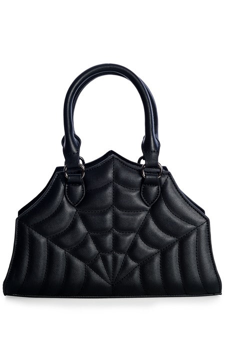 Elevate your witchiness with this lovely faux leather bag with removable shoulder strap and quilted spider web embroidery!