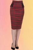 Red Tartan Victory Pencil Skirt