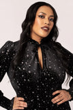 - Black velvet fabric with silver glittery sparkles/stars all over