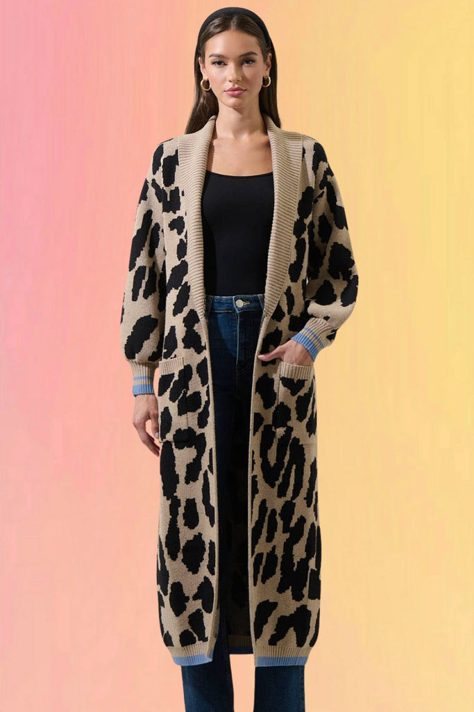 Complete your outfit in style with the City Cat Leopard Duster Cardigan.