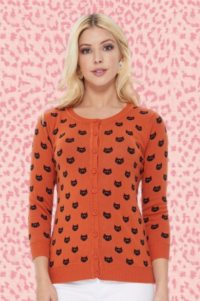 Crew Neck Cat Cardigan: Orange