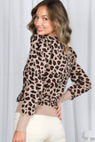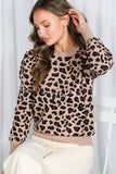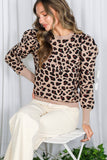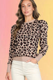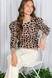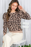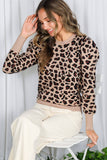 - Ribbed Crew neck leopard pattern fashionable knit sweater -