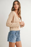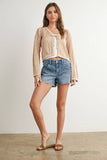 Cotton Crochet Tie-Front Cardigan: Soft Blue