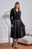 An elegant cardigan featuring custom-designed floral embroideries, v neck and long sleeves. Perfect blend of 50s style with a modern twist