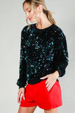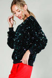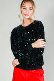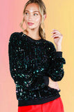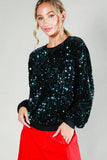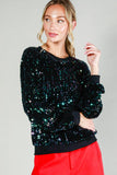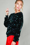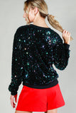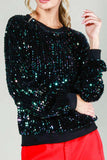 Add a little sparkle to you season in this flashy, festive and fun sequin sweatshirt.