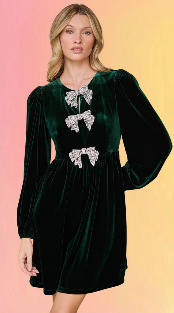 Celebrate any fabulous festivity with a dynamite look like the Glow Bow Velvet Mini Dress!
