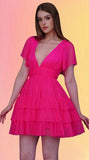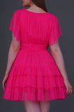 This bright pink tulle mini dress is the perfect standout for wedings, proms and any special occasion.