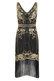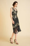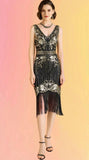 At the hem, the petal-shaped scalloped edges blend seamlessly into the fringed detailing, evoking the glamour of the Roaring Twenties.