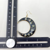 These earrings feature delicate Baby's Breath flowers meticulously preserved in black resin, forming captivating black moon-shaped charms.