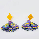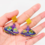 The Mysterious Starry Purple Moth Acrylic Post Earrings are a captivating and enchanting accessory.