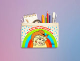Stand out with this fun, funky and feminist pouch! This zipper pouch is perfect for storing pencils, cosmetics, art and school supplies, or organizing the resistance.