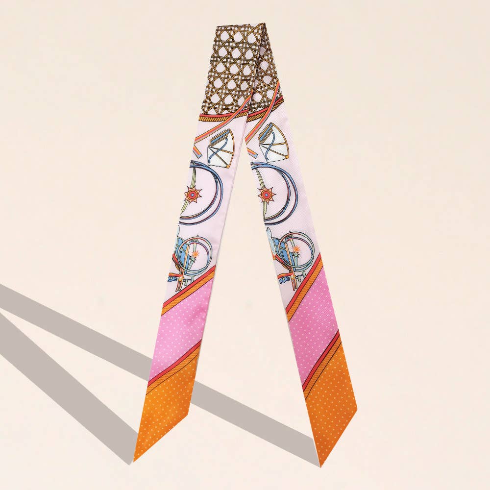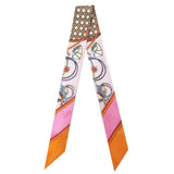 Enhance your wardrobe with this luxurious silk twilly scarf, featuring an exquisite tassel and jewel print. The perfect accessory for handbags, neck, or hair styling.