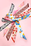 Stylish colorful pattern light weight Twilly headwrap scarf, and can be used as scarf necklace. Crafted from breathable, airy fabric, it offers a gentle, silky feel against the skin. Whether worn around the neck, styled as an accessory for your bag or hair, or necklace this versatile scarf, available in a range of beautiful colors.