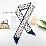 Stylish colorful pattern light weight Twilly headwrap scarf, and can be used as scarf necklace. Crafted from breathable, airy fabric, it offers a gentle, silky feel against the skin. Whether worn around the neck, styled as an accessory for your bag or hair, or necklace this versatile scarf, available in a range of beautiful colors.