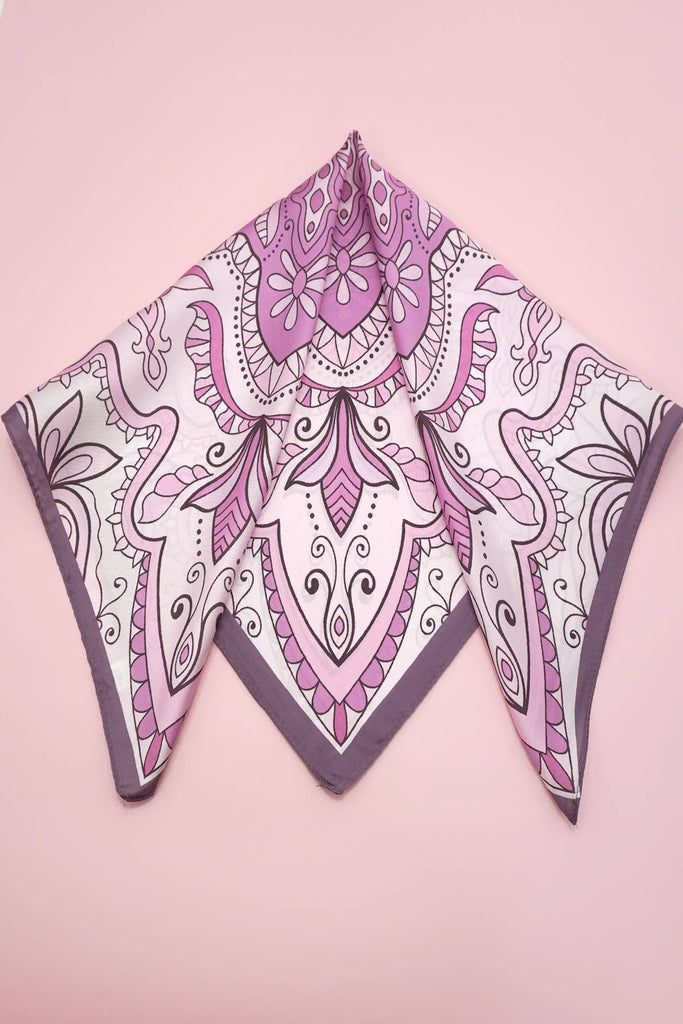 Traditional Print Silky Feel Bandana Scarf, made from luxurious silky-feel fabric, this bandana scarf features a traditional vintage floral aztec print design, bringing a feminine vibe to your look. Whether you wear it as a headband, neck scarf, wrist wrap, or tie.