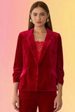 Velvet Blazer with Ruched Sleeves: Red