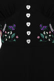 - The V-neckline skims the chest and gathers into the fitted underbust waist panel, decorated with white heart buttons.