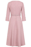 Feel elevated when wearing this classic 1950's wrap dress with button closure and matching belt.