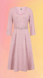 This calf length skirt with 3/4 length sleeves makes this investment piece very wearable for an array of occasions.