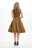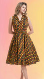 An absolute vintage inspired CLASSIC! The print is a "bitten" abstract apple in the loveliest shades of Fall!