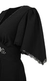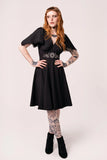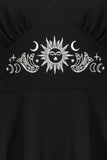 A little mysterious, a little magical and a lot of pretty! This midi dress is made from a bold black base, decorated with celestial, tarot-themed white embroidery along the waist and neckline.