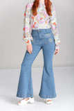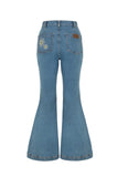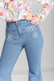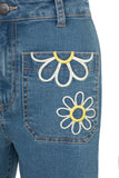 - Daisy embroidery in white and yellow on front pockets & 1 back pocket