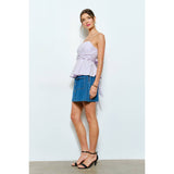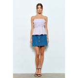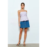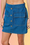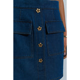 - Gold Floral Button Front Pocket Denim Mini Skirt