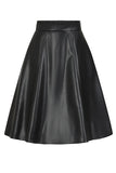 This alluring 1960's inspired a-line faux leather skirt has a sensual and feminine silhouette. This highwaisted power number is sure to turn heads. With must have side seam pockets and front seam detailing with topstitching gives a highend look.