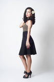 . Model measurement: She is 5'6'' and she is 33'', 25'', 35''.