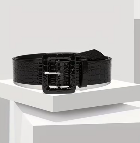 Black Faux Alligator Patent Belt