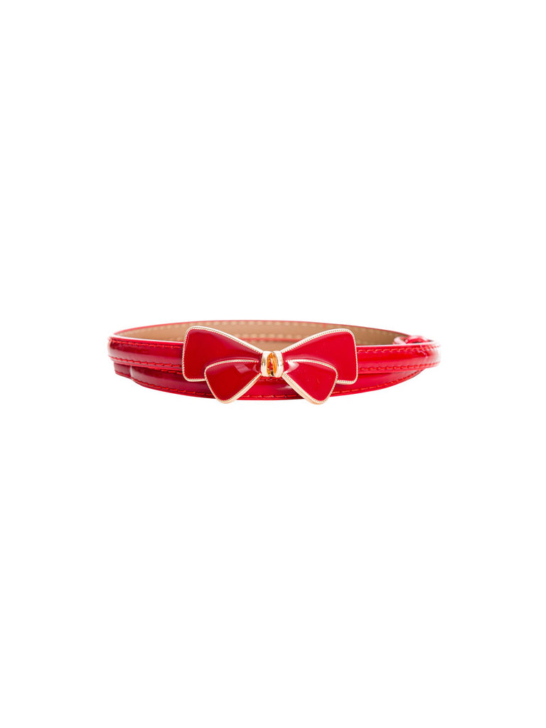 ADJUSTABLE PATENT BELT WITTH ENAMEL BOW CLOSURE
