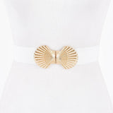 Shell Buckle Stretch Belt: White