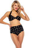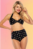 This bikini has that perfect vintage pin-up vibe. This collection was designed with real women in mind, suits almost all body shapes and figures and is incredibly slimming. Made of a high quality swimwear fabric, featuring sewn-in soft cups with reinforced ribs at the side. Look elegant in and out of the pool in this beauty!