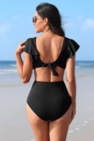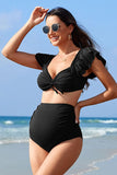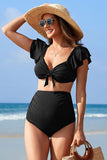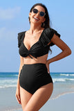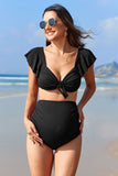 Ruffle sleeve bikini swimsuit made by ribbed fabric, super soft, breathable & stretchy, fit perfectly as your belly grows
