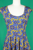 - Full flared skirt with fitted bodice